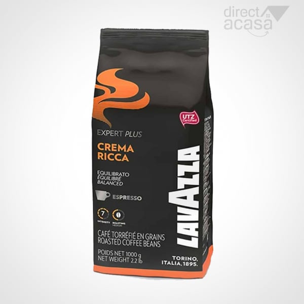 Lavazza Expert Crema Ricca este o selectie de cafea rafinata Arabica si Robusta provenind din plantatiile certificate UTZ. Fiecare espresso ofera arome placute de fructe uscate si ciocolata neagra. Evoca aromele intense de cacao cu note de biscuiti si paine proaspat coapta.