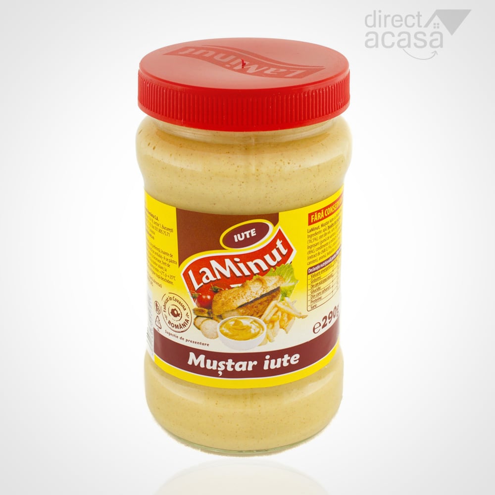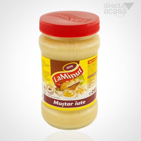 Mustarul iute La Minut este cel care iti iuteste preparatul in doar un minut. Un mustar iute, fara conservanti, care poate fi folosit in special pe preparatele din carne. Asa ca, data viitoare cand mergi la gratar cu familia, sa nu uiti mustarul acasa!